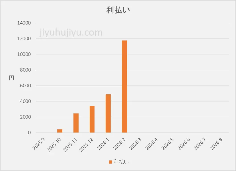 毎月の利払いの推移はこちらです。